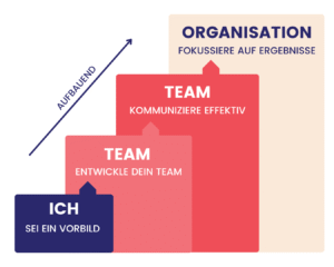 Auch wenn es in der Führung Hierarchien gibt und diese in vielen Fällen auch notwendig sind, funktioniert die Zusammenarbeit in Zeiten des technologischen Fortschritts anders. Als Leader:in bist du Teil eines Teams, einer Organisation, umgeben von Menschen, die zusammenarbeiten, um Erfolge zu erzielen. Als Leader:in gibst du den Rahmen und die Richtung vor, doch das Know-How, die Lösungskompetenz und die Innovationskraft kommt von innen heraus. Aus der Mitte – von deinem Team.